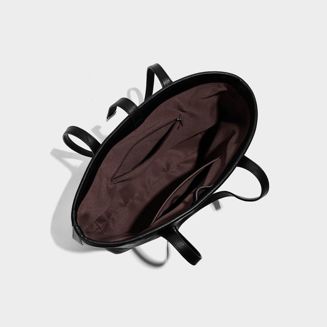 The spacious interior is thoughtfully designed to fit a 13” laptop, notebooks, makeup pouch and all the extras you need on busy days. Internal slip pockets keep your essentials organised, while the lockable top strap closure offers added security without compromising the tote’s sleek aesthetic.