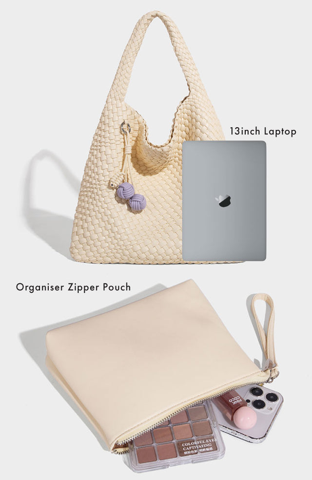 A seamless blend of laid-back charm and everyday function, the Camilla Woven Tote is your effortless companion for workdays, weekends, and holidays.